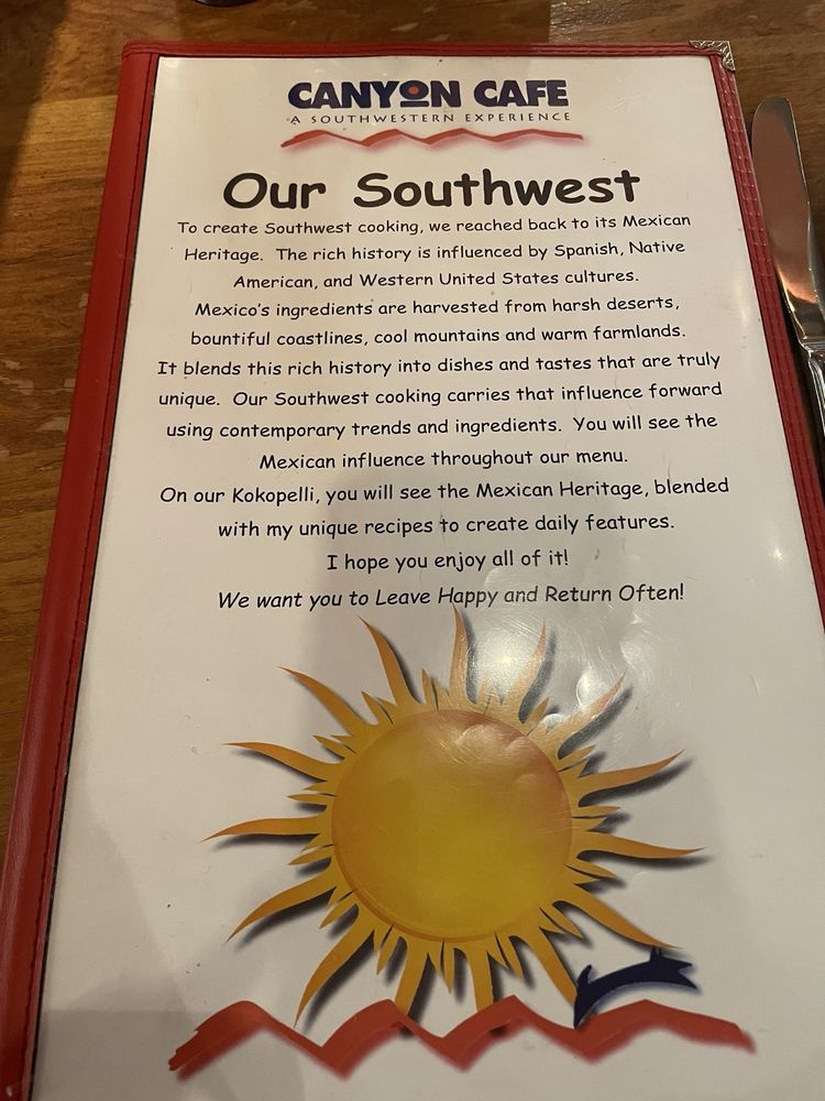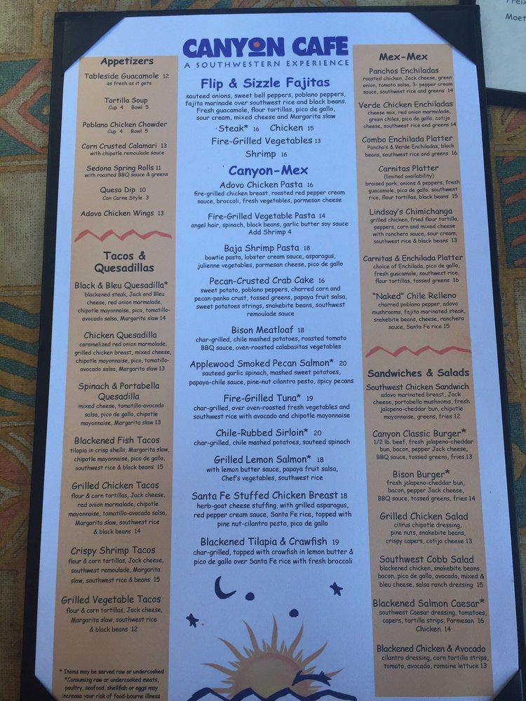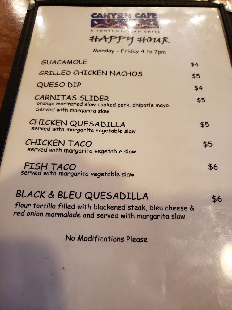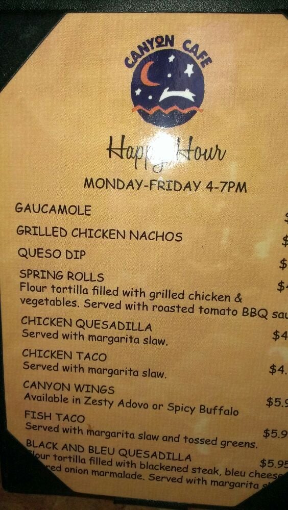 Introducing Canyon Cafe, a Tex-Mex-Mexican gem located in Saint Louis, MO. This restaurant offers a wide variety of dishes, from starters like Guacamole & Chips and Southwest Caesar Salad to flavorful entrees like Grilled Steak Fajitas and Verde Chicken Enchiladas. Customers rave about the friendly servers, the inviting atmosphere, and the delicious margaritas. The diverse menu includes vegan and vegetarian options, ensuring there's something for everyone. With many dining areas to choose from, including a bar, outdoor seating, and mall seating, Canyon Cafe provides a comfortable and spacious dining experience. Don't miss out on complimentary chips and salsa and the sweet treat of corn-wrapped white chocolate at the end of your meal. Whether you're a regular or a first-time visitor, Canyon Cafe will surely leave you satisfied and wanting to come back for more.
